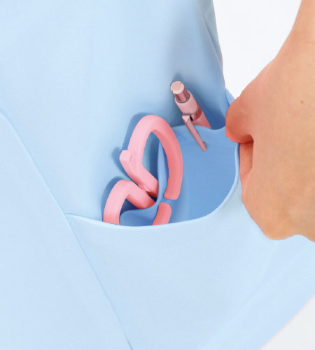 右脇ポケットにはペン差し付き、左脇ポケットには小物入れ付きです。※実際のポケットには配色カラーがついています。