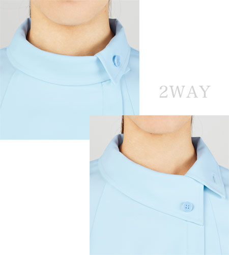 Fleur(フルール)とはフランス語で「花」を意味する言葉。花からインスピレーションを得た色は、人を自然と癒すチカラがあります。病院や院内にも、花が咲いたような安らぎの色彩を取り入れてみませんか。 軽くしなやかなストレッチカシミヤ素材は、程よい伸縮性で動きやすく、肌触りも良く吸汗速乾性も抜群。 襟元はボタンの留め方で2Wayの着こなしが楽しめ、気分によって着こなしを変えられる嬉しいワンピースです。