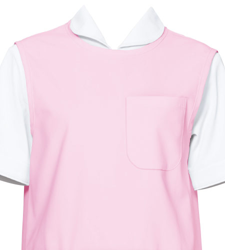 ユニフォームの上に、簡単に着脱できてしっかりカバーできるロング丈のノースリーブエプロン。スリット入りで足さばきが良く、しゃがむ動作がしやすく動きやすい!フロントには充実の3つポケット付きで小物などの収納に便利です。静電気を空気に逃がす制電仕様の素材で、着脱がスムーズに行えます。