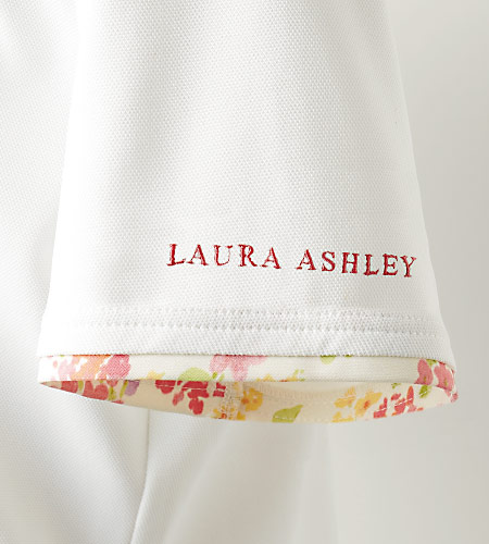 こちらの商品は、左袖に「LAURA ASHLEY(ローラ アシュレイ)」のロゴ刺しゅうがございます。左袖への刺しゅう・プリント加工はロゴ刺しゅうの上でしたら可能となります。ご注文の際は、自由記入欄に「ロゴ上」とご記入ください。