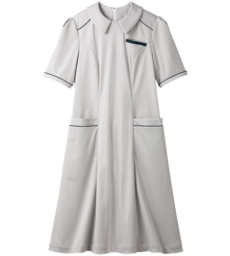 クラシカルなデザインがおしゃれなワンピース。デザイン性だけでなく、医療現場に不可欠なSEK制菌加工や防汚加工を施し衛生面への配慮も。小物を小分けにできる二重ポケットは、ペンのインク染みを防ぐ仕様で実用性にも優れています。