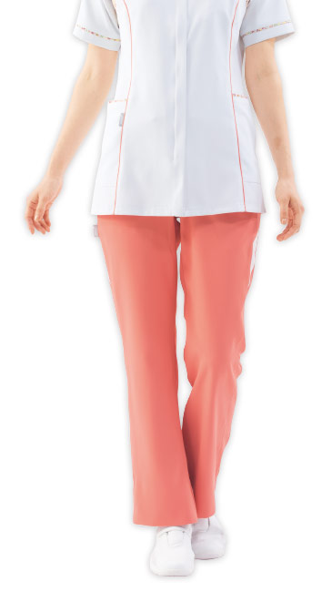 親しみやすい小花柄の切り替えとパイピングがアクセントの 帯電・防汚加工で清潔感を保つ、アシックスのメディカルウエア。