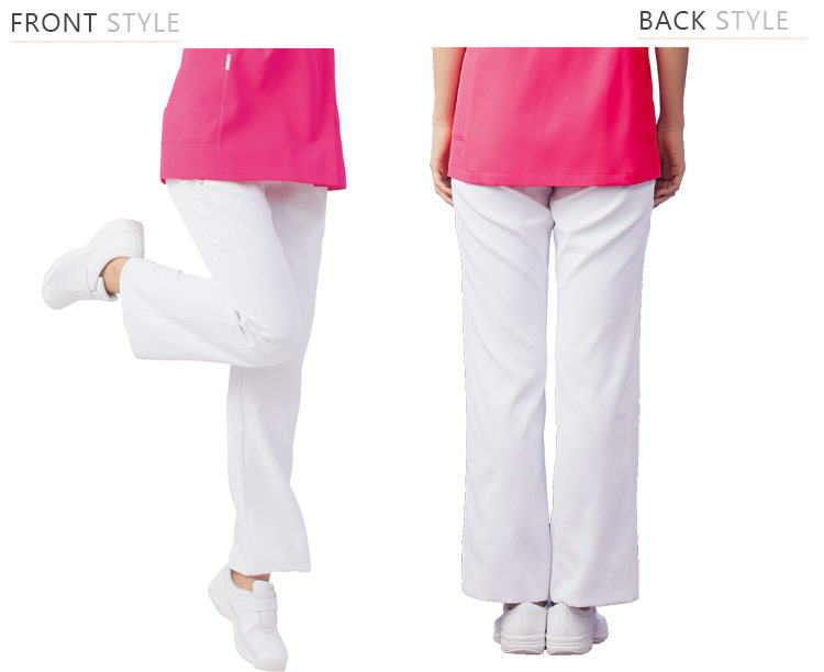 - 制菌、帯電防止、防汚加工、透け防止、吸水、両脇ポケット、両脇ゴム、右ヒップポケット