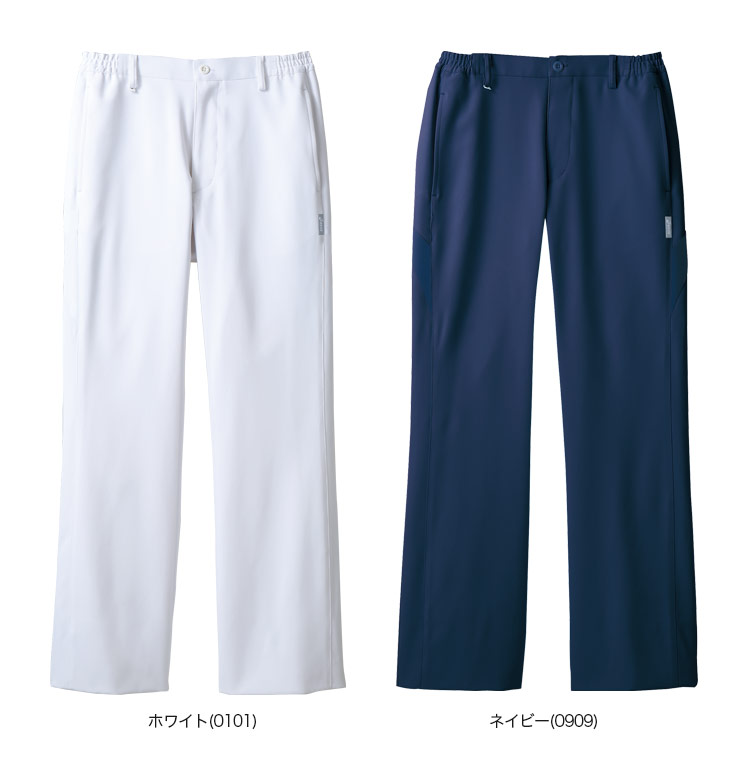 - 制菌、帯電防止、防汚加工、透け防止、吸水、両脇ポケット、両脇ゴム、右ヒップポケット