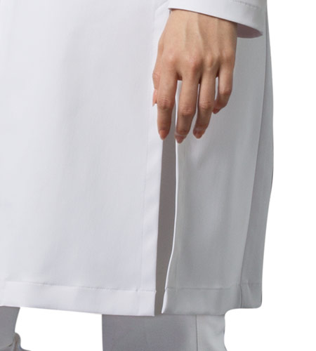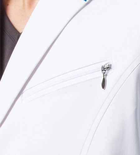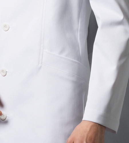 コシノジュンコがデザインする医療ユニフォーム。見た目に美しく、着て動きやすいドクターコート。機能美を追求した新しいプレミアムシリーズ。シンプルなテーラードカラーのドクターコートは、 素材感とディテールが決め手。ハリのある素材と立体的なパターンで着たとき・動いたときの美しさが際立ちます。胸ポケットのジップがおしゃれ。