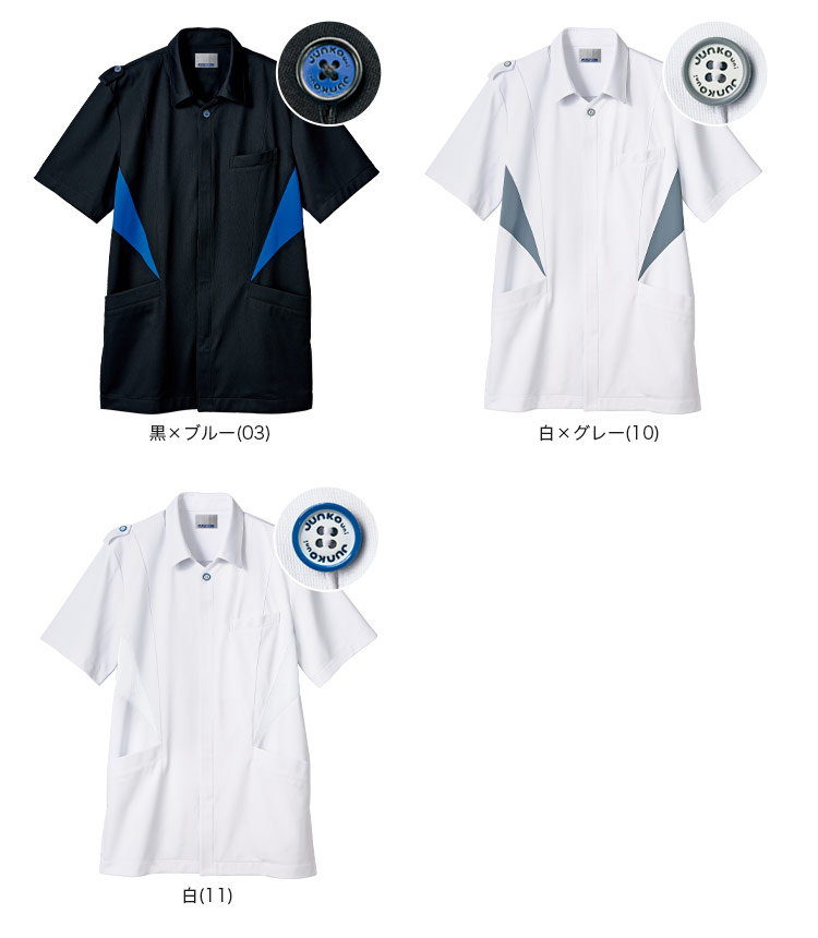 患者様に信頼感を与える襟付きデザイン。襟裏デザイン