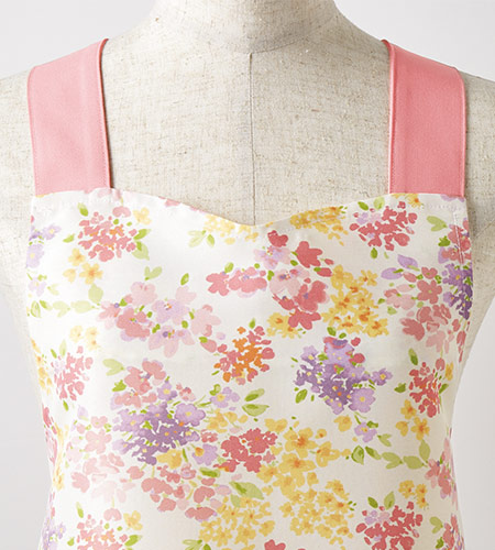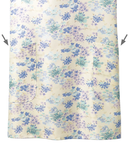 LAURA ASHLEY(ローラ アシュレイ)の華やかで可愛らしいエプロン。前に使用した花柄がグッと女性らしさをアップさせ、着ている人や院内を品の良い雰囲気にさせてくれます。