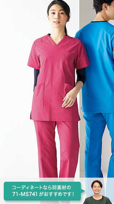 超・軽量でよく伸びるストレスフリーなスクラブ。豊富なカラーバリエーションでコーディネイトもセットアップでも着用できます。
