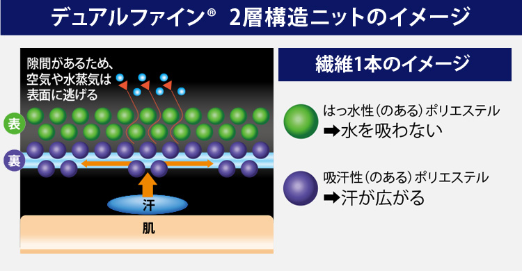 - ハイパーストレッチトリコット(ポリエステル100%)、配色:デュアルファインニット(ポリエステル100%)