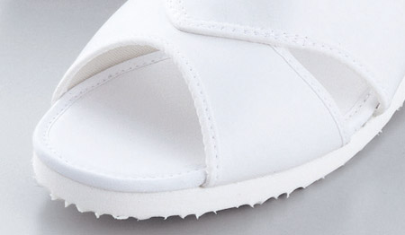 はき心地はゆったり3Eタイプながら、見た目はすっきりスマート。 つねに動きまわる医療スタッフにとって、ユニフォームはもちろん、シューズはとても大切なアイテム。 モンブランは足に負担をかけずに履きやすく、動きやすく、そしてフィット感の良いアイテムを追求しました。 通気性が良い、オープントゥタイプのナースシューズです。
