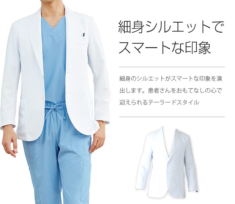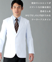 細身のシルエットがスマートな印象。 患者さんをおもてなしの心で迎えるテーラードスタイル。