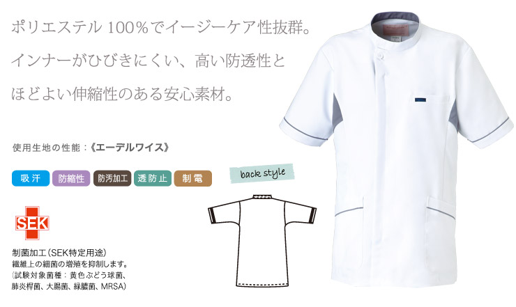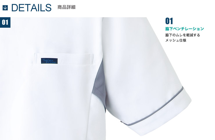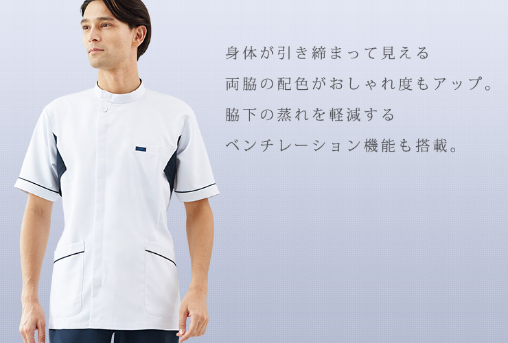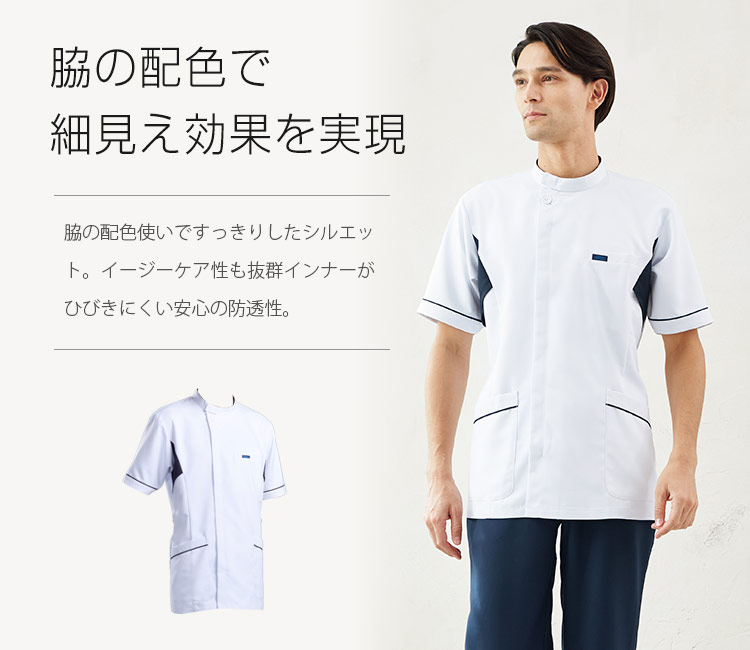 脇の配色使いで見た目がすっきり。 汚れの目立ちにくいイージーケア性の高い素材を使用した、シンプルでおしゃれなケーシー。