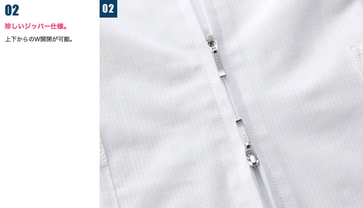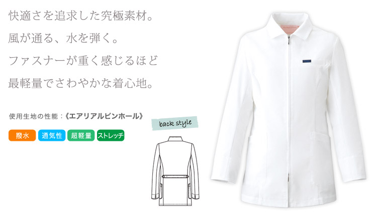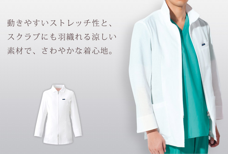 超軽量で涼しい着心地が好評のラボコート。珍しいジッパー仕様で、上下からのW開閉が可能です。