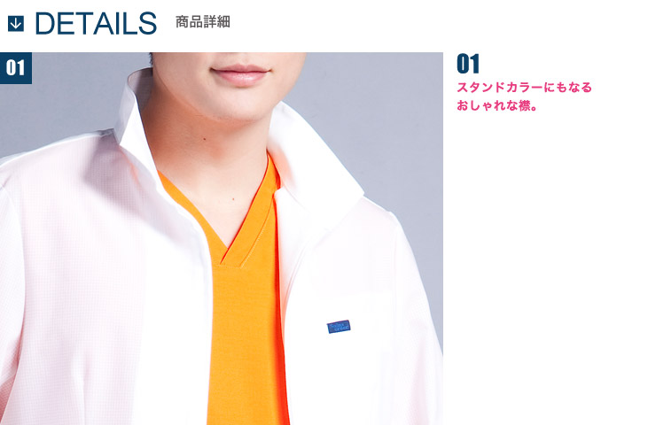 スタンドカラーにもなるおしゃれな襟や、折返しに便利な袖口スリットなどデザインにもこだわりました。