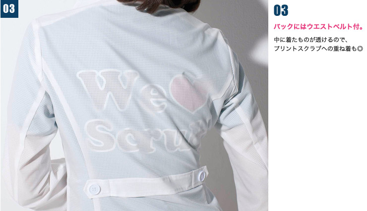 スクラブにベストマッチ。中に着たものが透けるので、プリントスクラブへの重ね着も◎