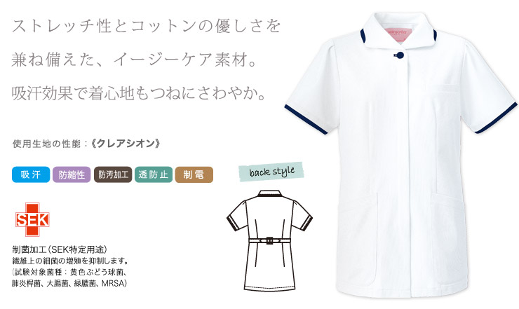 - 吸汗、防縮性、制菌、防汚加工、透防止、制電