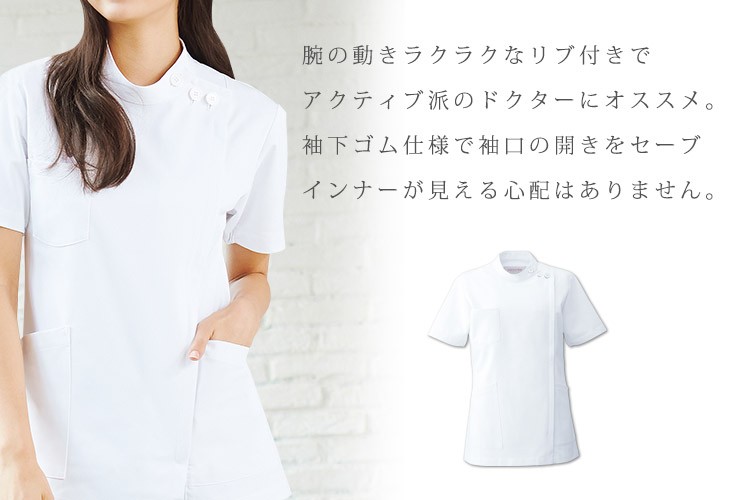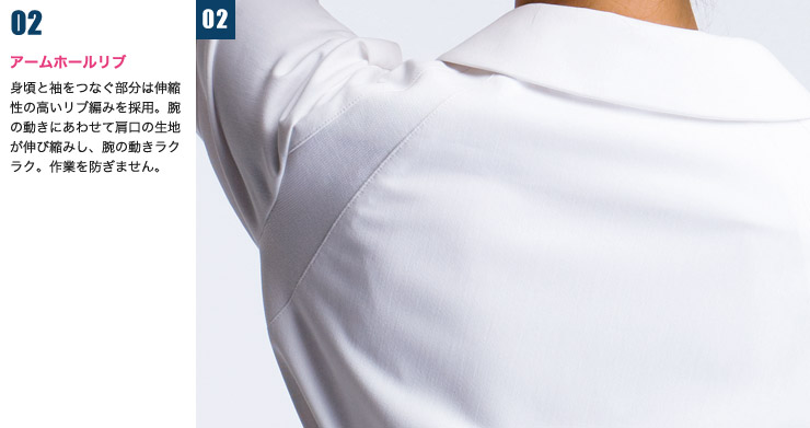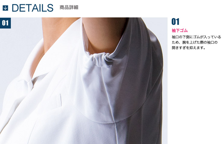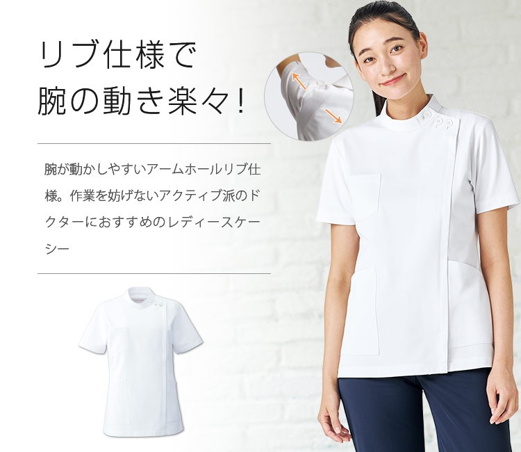 アクティブ派におすすめなレディースケーシー。 腕が動かしやすいアームホールリブ仕様で作業を妨げません。 袖下ゴム仕様で袖口の開きをセーブするので、インナーが見える心配はありません。
