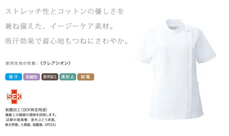 - 吸汗、防縮性、防汚加工、透防止、制電、制菌加工