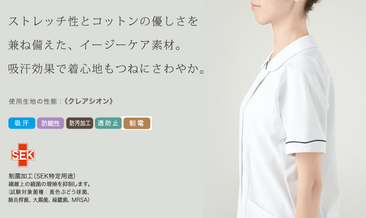 ストレッチ性とコットンのやさしさを兼ね備えたイージーケア性の高い素材を使用。