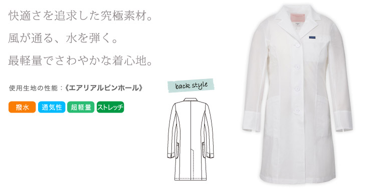 快適さを追求した究極素材「エアリアルピンホール」を使用した長袖の女子シングルコートです。