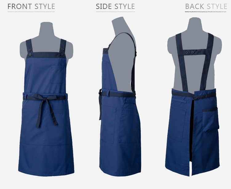後ろの調整タブの釦を外し上部を折りたたむ事でカフェエプロンのようなサロンスタイルのような様々なシーンに合わせて着用出来ます。