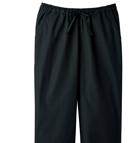 - 総ゴム、両脇ポケット、後ろポケット付き、ウエストひも入り