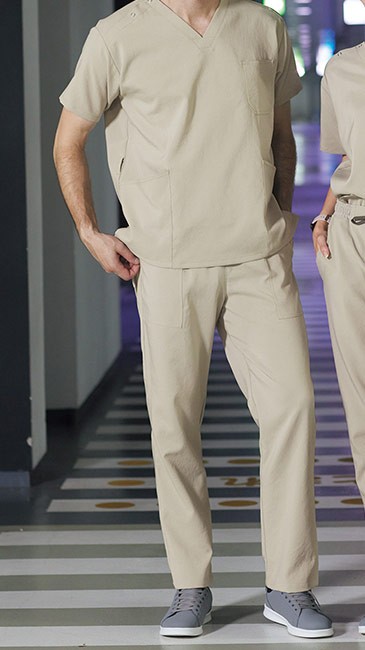 アメリカ発のスクラブを小柄な日本人体型にフィットするようにリニューアル。 ジャストフィットサイズのスクラブが軽快な現場ワークをサポートします。