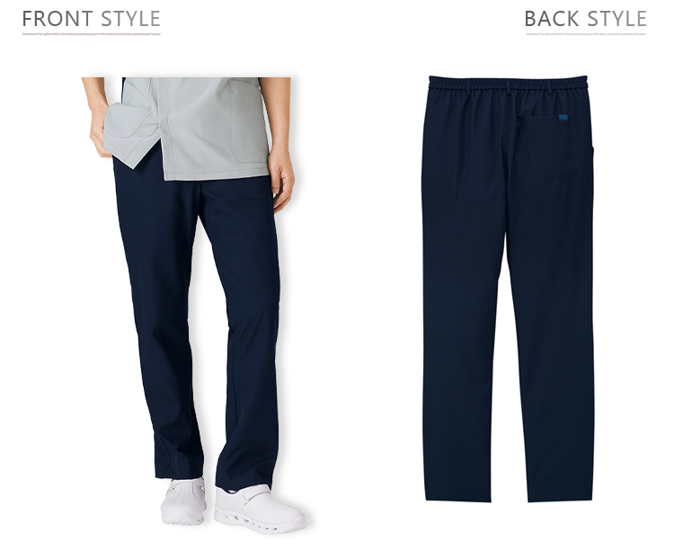 らくらくストレッチでスクラブにフィットする、男性用のスリムストレートパンツ。 伸縮性のよいストレッチ生地で、動きやすさはもちろん、ポリエステル100%で、優れたイージーケア性も嬉しいポイント。従来のパンツと比べて、動きやすく、すっきりとしたシルエットです。適度なゆとり感でダボついていないので、きちんとして見えて清潔感のあるスクラブパンツ。ジップスクラブとのコーディネートにおすすめです。