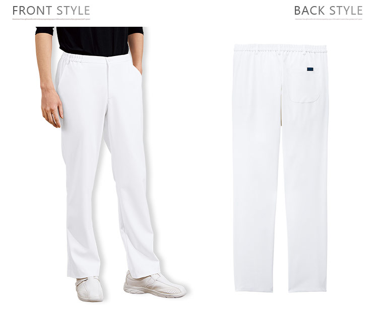 らくらくストレッチでスクラブにフィットする、男性用のスリムストレートパンツ。 伸縮性のよいストレッチ生地で、動きやすさはもちろん、ポリエステル100%で、優れたイージーケア性も嬉しいポイント。従来のパンツと比べて、動きやすく、すっきりとしたシルエットです。適度なゆとり感でダボついていないので、きちんとして見えて清潔感のあるスクラブパンツ。ジップスクラブとのコーディネートにおすすめです。