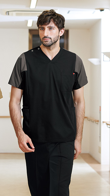 アメリカ発のスクラブを小柄な日本人体型にフィットするようにリニューアル。 ジャストフィットサイズのスクラブが軽快な現場ワークをサポートします。