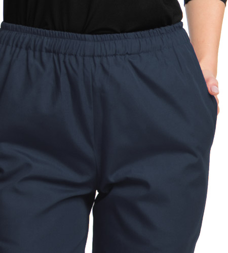 - 両脇ポケット、後ろポケット付き、ウエストひも入り