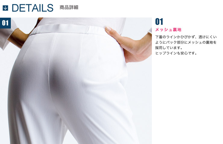 総ゴム仕様で、締め付け感がなくウエストラクラク。 透けとシワに強くしなやかな素材を使用し、ふんわり軽くサラッとした快適な着心地。 どんな物にも合わせやすいホワイトカラーで、コーディネートに悩まない!