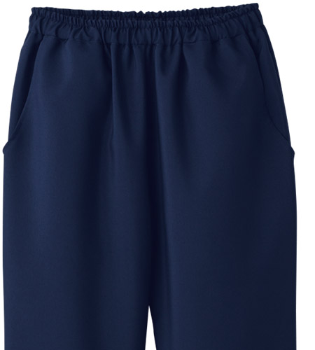 - 総ゴム、両脇ポケット、後ろポケット付き、ウエストひも入り
