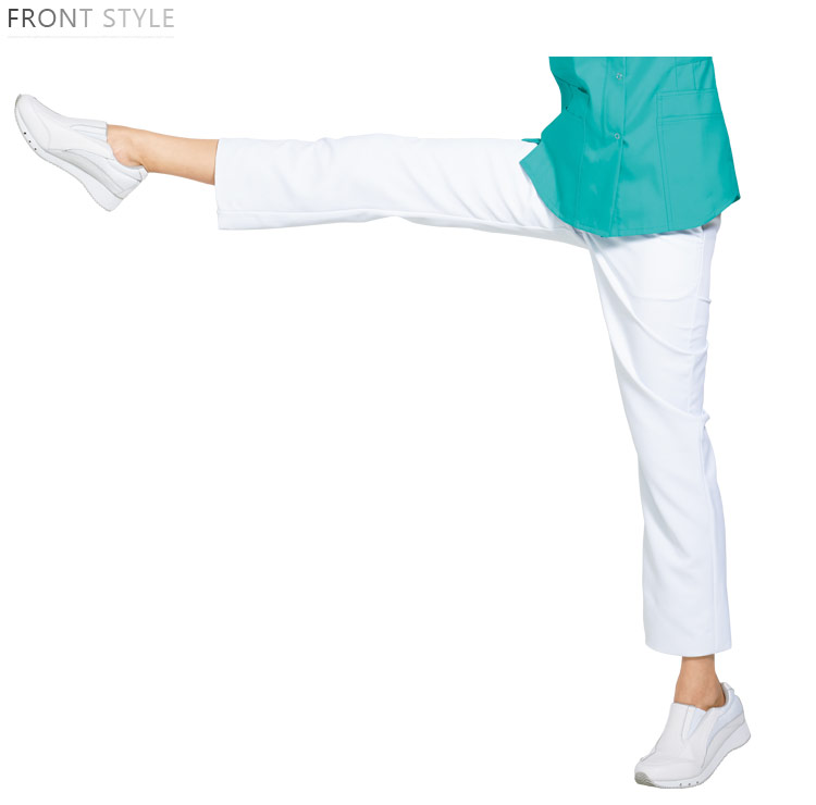 イージーケアでスクラブにもあわせやすい美シルエットのストレートパンツ。