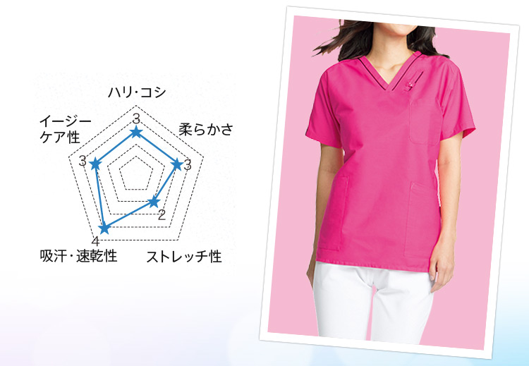 リハビリスタッフのユニフォームとして購入しました。156cm,43kgの女性スタッフはSSでぴったりでした。