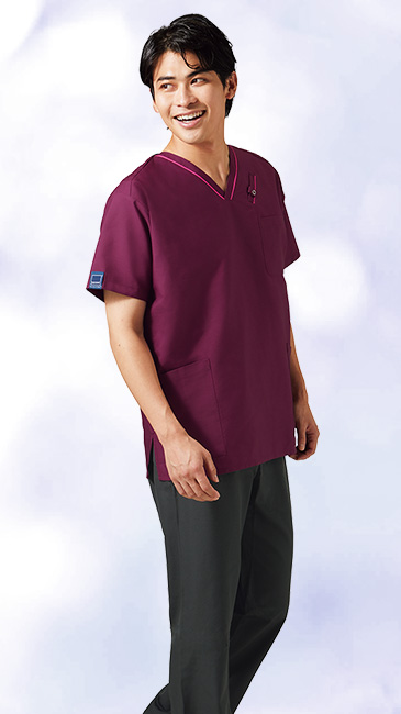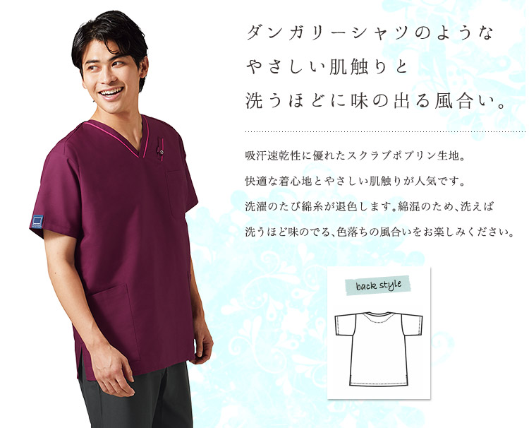 伸縮性は乏しいので着脱にはコツがいりますが、着心地が良く愛用しています。このバージョンはストライプが入っているので患者さんにも高評価でした。ストライプと刺繍の色を同色にするといい感じです。