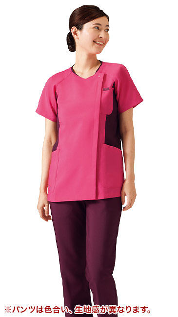 フォーク独自に考案した機能で、かぶらずに羽織って着られるZIPスクラブシリーズ。 スピーディに脱ぎ着ができるだけでなく、着脱時に化粧や髪型が乱れるのを防ぎます。機能的な携帯電話ポケット