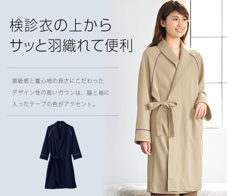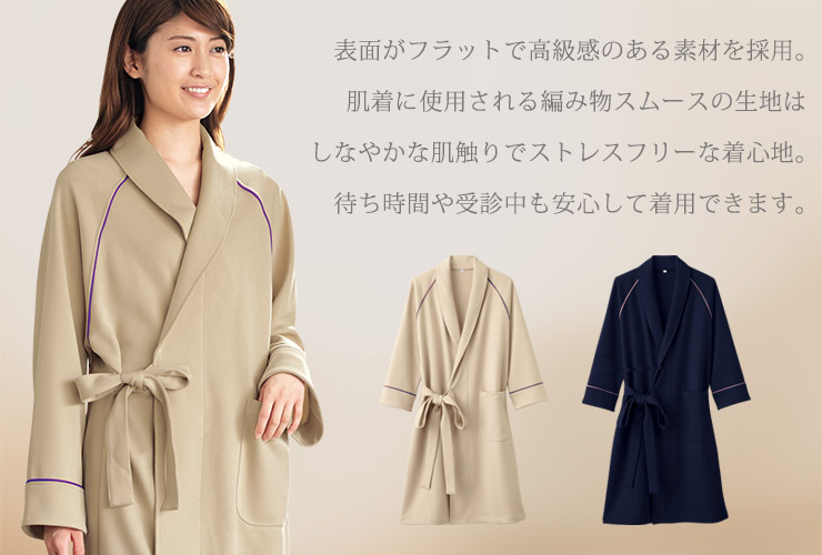 上品で着心地の良さにこだわったガウンは、検診衣の上からさっと羽織れて快適。