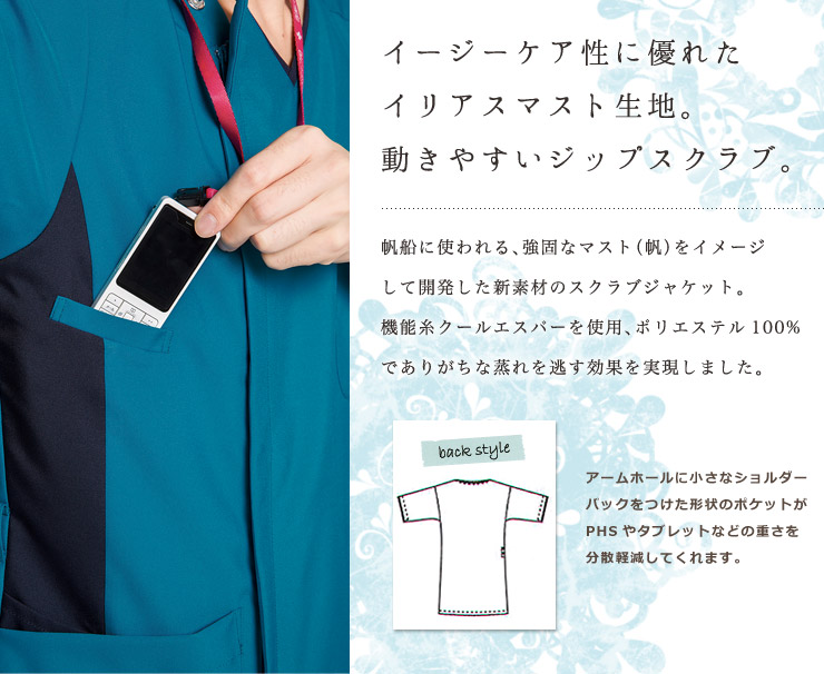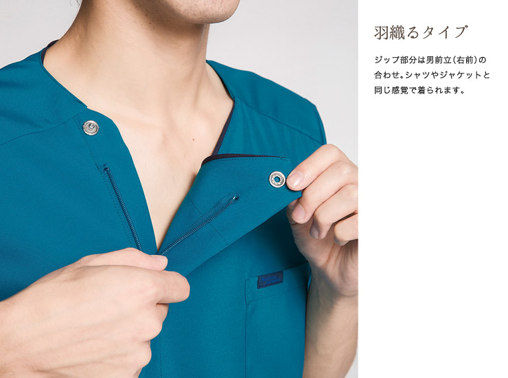 医療現場に嬉しい着脱しやすいジップスクラブ®ジャケット。 ジップアップタイプなので、ヘアセットが乱れず着脱ができます。 長袖のインナーを合わせる事で自身の健康管理にもなります。かっこいい着こなしとコンディションの両立を目指す人の新しいメディカルスタイルをご提案します。 "ジップスクラブ"ならび"ジップアップスクラブ"はフォーク(FOLK)の登録商標です。
