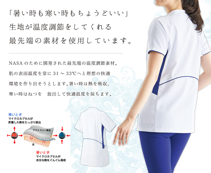 暑い時は涼しく、寒い時は暖かく、生地が体温調節をしてくれる新素材・アウトラストを使用し、快適な着心地を実現。
