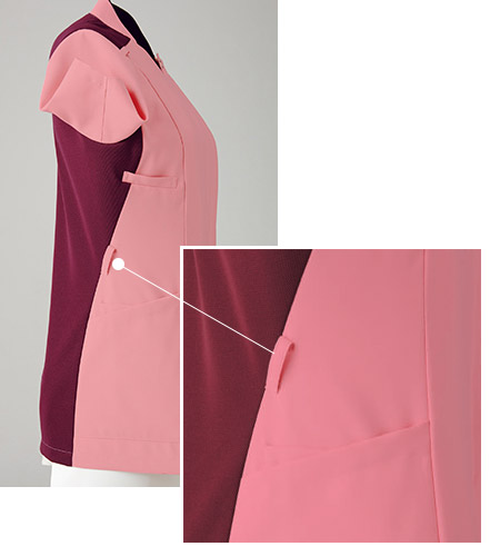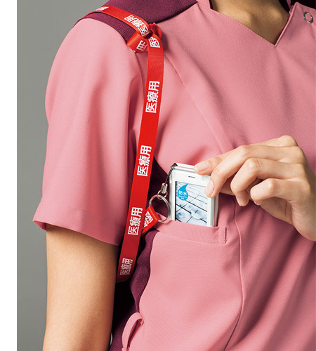 フォーク独自に考案した機能で、かぶらずに羽織って着られるZIPスクラブシリーズ。 スピーディに脱ぎ着ができるだけでなく、着脱時に化粧や髪型が乱れるのを防ぎます。機能的な携帯電話ポケット&肩ループ
