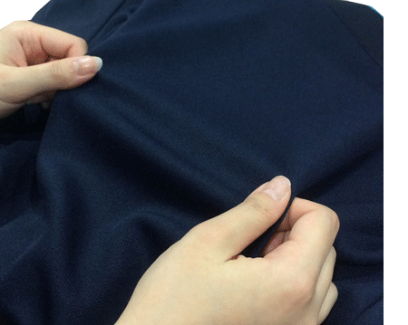 前面は機能糸クールエスパーを使用し、ポリエステル素材でありがちな蒸れを逃す効果を実現。背面のブリースニットは、通気性や伸縮性があり、動きやすくてさらりとした着心地! 脇にかけてこのニット素材を使用することで、かいた汗を素早く吸収。 汗をかいても目立ちません。