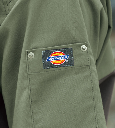 左袖にはディッキーズのロゴがアクセントになったリペットポケット付き。