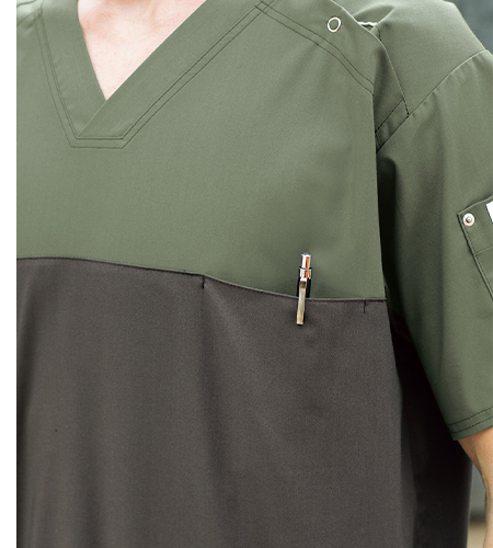 ディッキーズの着心地が多忙な毎日を支えます。 アメリカで圧倒的な支持を得ている「ディッキーズ」。そんなディッキーズから、スモーキーなバイカラーがポイントのスクラブが登場です。 日本人の体型にジャストフィットし、軽快に医療現場をサポートします。着こむほど、洗うほどに変化する ダンガリーのような風合いをお楽しみください。