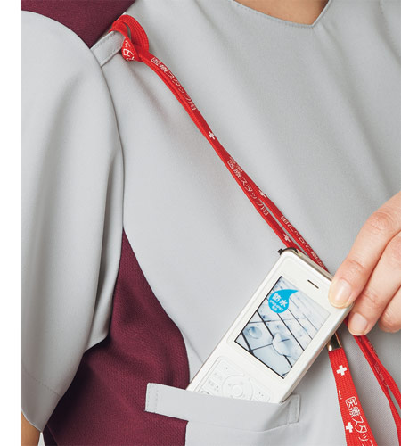 右腰の小分けポケットは、サージカルテープやはさみなど小物類の収納に最適。 便利な腰ループもついています。機能的な携帯電話ポケットと肩ループ