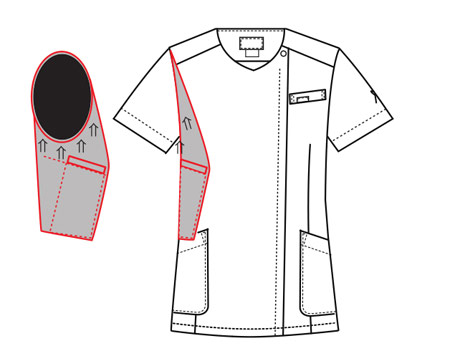 右腰の小分けポケットは、サージカルテープやはさみなど小物類の収納に最適。 便利な腰ループもついています。機能的な携帯電話ポケットと肩ループ