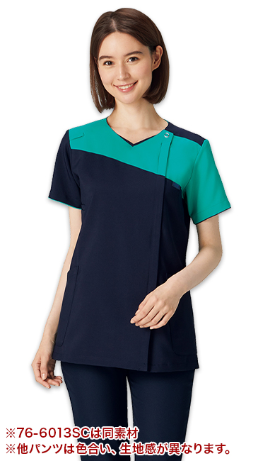 医療現場に嬉しい着脱しやすいジップスクラブ®ジャケット。 ジップアップタイプなので、メイクやヘアセットが乱れず着脱ができます。 斜めのアシンメトリーのデザイン、配色がおしゃれな印象で明るくしてくれます。