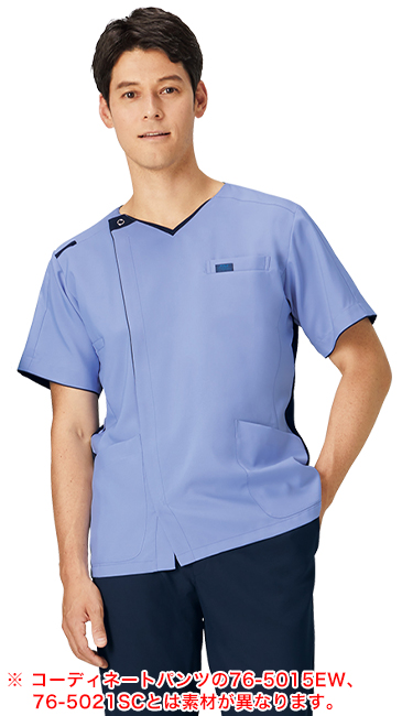 動きやすくて涼しく、ニット素材を用いた異素材コラボのスクラブ。脇に濃い色のニットを使用し、ストレッチ性と吸汗速乾に優れた素材。通気性もよく、涼しく過ごせ、汗が目立ちません。 医療現場に嬉しい着脱しやすいジップスクラブ®ジャケットです。