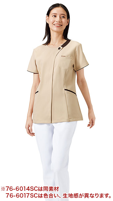 今までにない新しいイメージのジップスクラブです。フェイクのボタンがアクセントに、70年代のモダンモードな雰囲気のスクラブ。 丈はやや短めで、接客や受付業務も兼ねた歯科衛生士さんなどにおすすめです。