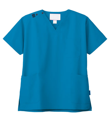 他のMサイズのスクラブに比べて腰回りが少しゆったりです。商品寸法は他製品のMサイズとほぼ同じくらいなのですが。ポケットが二重になっている関係でしょうか?ずりあがってこなくて良いですよ。着てみるまでポケットが二重になっていることに気づいていなかったのですが二重ポケット便利ですね。固めの生地でストレッチ性はありませんが動きづらいということもなく、身体への張り付き感がなく夏でも空気が通って涼しいです。首元のボタンも二個あって大きく開くので着替える時に助かります。